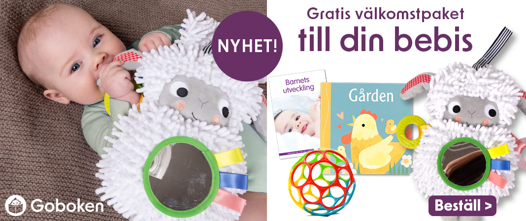 Lammets armar är spännande, för här är det helt enkelt meningen att barnet ska få smaka på Goboken. ”Händerna” är bitringar i mjuk plast som kan vara härliga att sätta tänderna och det kliande tandköttet i.
